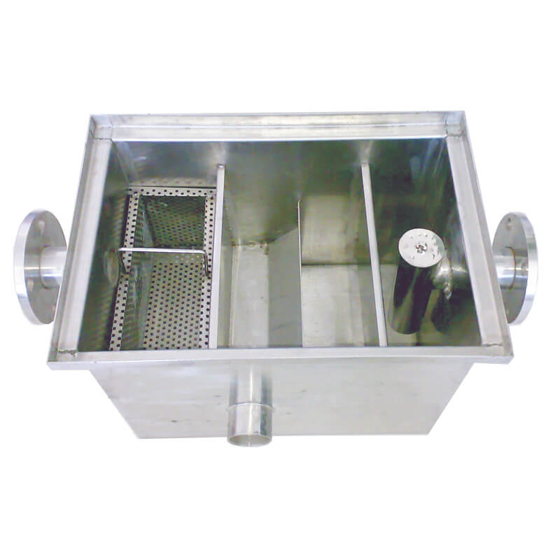 隔油池主要由兩槽'三槽'四槽分別組成,當廚房排水流到第一槽時,雜物框將其中的固體雜物(菜葉等)截流除去,進入第二槽后,利用油水密度差使油水分離。廢水沿第二槽隔油板向下流動,進入第三槽后從物理裝置凈化流出,再經出水管收集排出。第二槽中的油珠顆粒物沿隔油板集聚向上漂浮流動,始終浮在隔油池的第二槽內,經過隔油處理的廢水則溢流入排水渠排出池外,進行后續處理,以去除乳化油及其他污染物。